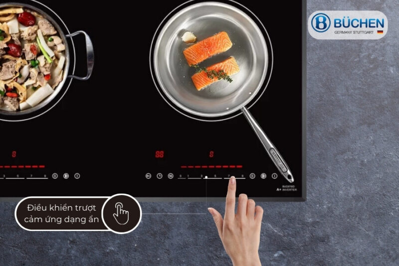 - Nấu thức ăn với độ chính xác cao, phản ứng tức thì với mức nhiệt mong muốn: Chính mạch công suất hiện đại giúp bếp từ Buchen BUC675ID có khả năng phản ứng thay đổi công suất theo điều khiển rất nhanh, khi người dùng điều chỉnh tăng giảm nhiệt độ đun nấu, bếp điều chỉnh thay đổi tức thì về mức nhiệt độ mong muốn.