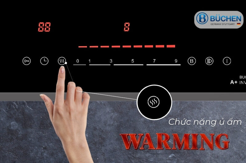 Chức năng ủ ấm “hâm nóng Warm”: Bếp từ Buchen BUC675ID có khả năng ủ ấm ở nhiệt độ nhất định, chức năng ủ ấm được lập trình giữ mức nhiệt độ ổn định giúp chúng ta duy trì nhiệt cho thức ăn luôn nóng mà không bị nguội đi phải đun lại nhiều lần làm giảm chất dinh dưỡng trong thức ăn, đặc biệt về mùa đông thời tiết lạnh.