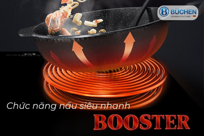 Bếp từ Buchen BUC675ID gồm 2 vùng nấu với tổng công suất 4800W. Vùng nấu trái có công suất 2000W khi kích hoạt tính năng nấu siêu nhanh Booster công suất lên tới 2400W. Vùng nấu phải có công suất 2000W khi kích hoạt tính năng nấu siêu nhanh Booster công suất lên tới 2400W. Chỉ trong chốc lát sau khi kích hoạt tính năng này, nhiệt lượng trên vùng nấu từ tăng lên công suất tương đương với mức nhiệt lượng lớn nhất. Do đó, các món ăn được nấu chín nhanh hơn, tiết kiệm thời gian vào bếp cho chị em nội trợ. Chức năng Booster nấu siêu nhanh, tuy nhiên thời gian tối đa mặc định dùng chức năng này là 10 phút / lần tránh quá tải.
