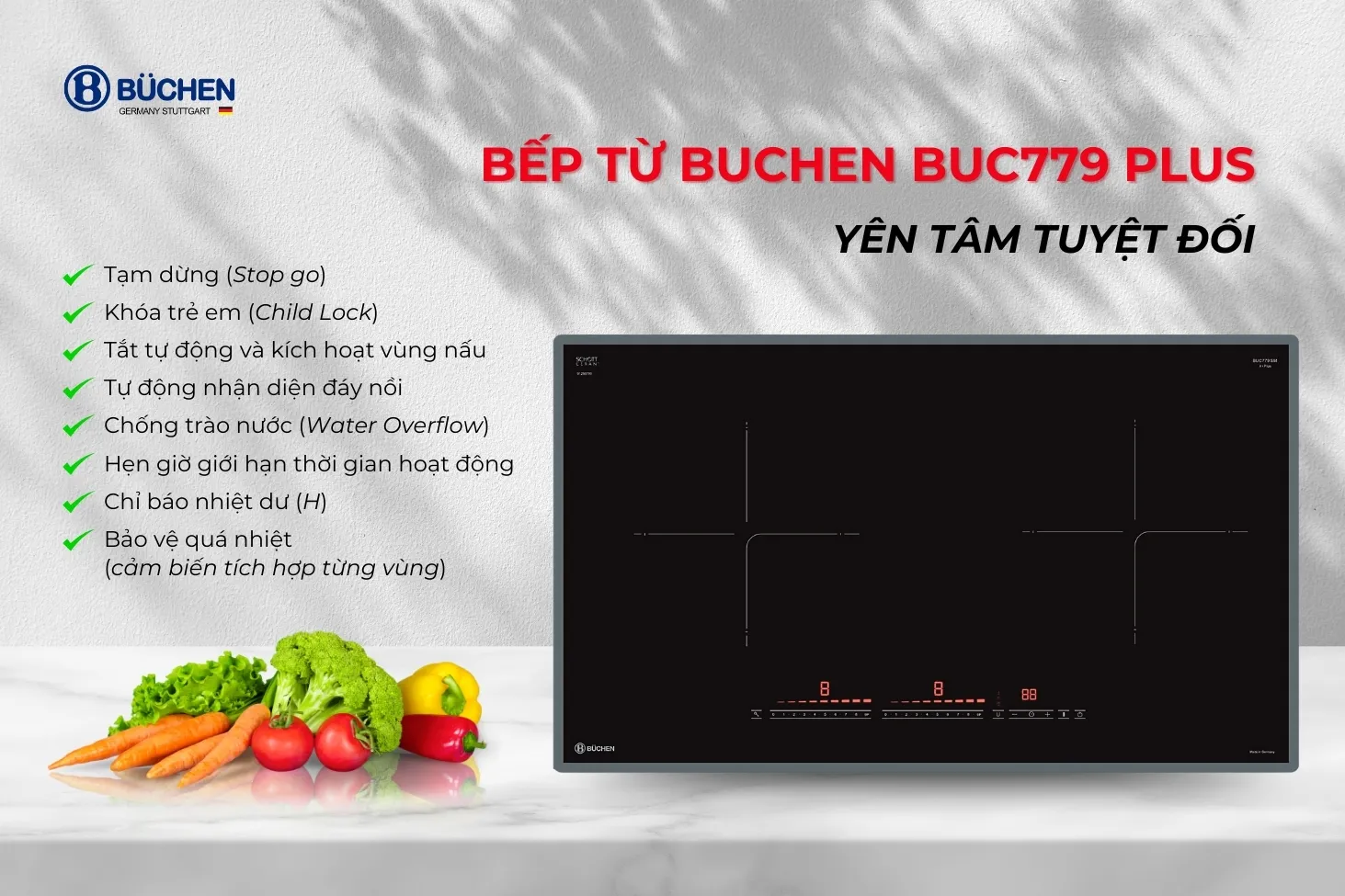Không chỉ dừng lại ở các tính năng thông minh giúp việc nấu ăn trở nên dễ dàng hơn và bếp từ Buchen BUC779 Plus còn được trang bị hàng loạt các chức năng an toàn để hạn chế tối đa các tai nạn nguy hiểm không đáng có.