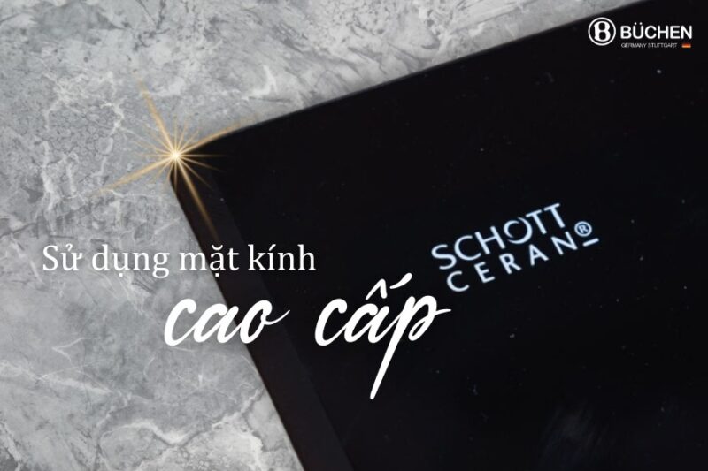 - Mặt kính Schott Ceran: BUC779SMART sử dụng mặt kính gốm sứ cao cấp Schott Ceran nhập khẩu từ Đức. Đây là loại kính chịu nhiệt, chịu lực tốt, chống trầy xước và dễ dàng vệ sinh. Mặt kính được vát 4 cạnh tinh tế và bo viền hợp kim nhôm cao cấp, không chỉ tăng tính thẩm mỹ mà còn bảo vệ các cạnh bếp khỏi va đập.
