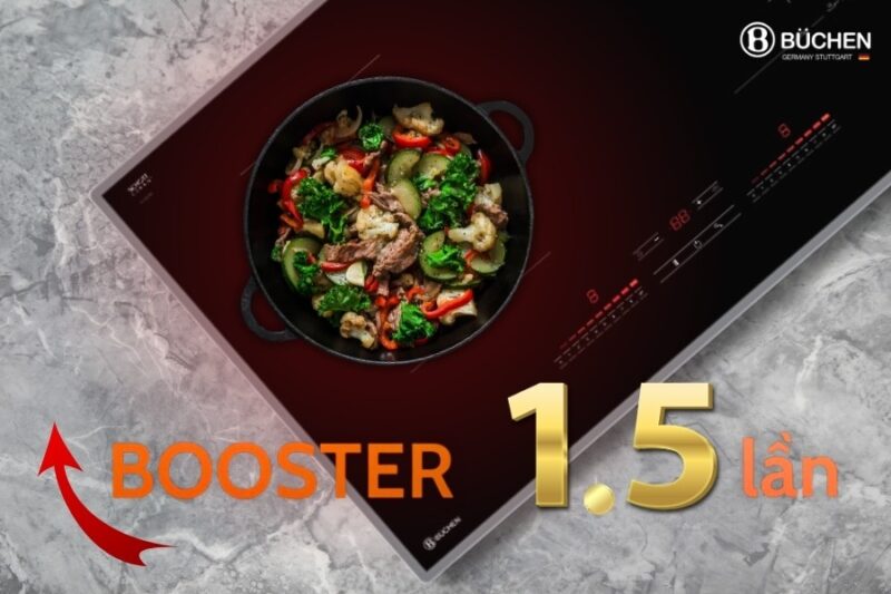 - Tính năng Booster siêu nhanh: Mỗi vùng nấu có công suất cơ bản là 2300W và có thể đẩy lên mức công suất cực đại 3000W (Booster). Tính năng này giúp làm nóng và đun sôi thực phẩm nhanh gấp 3 lần bếp truyền thống, tiết kiệm thời gian nấu.