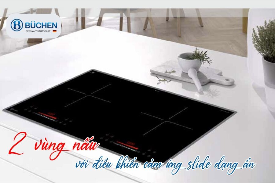 Bếp từ 2 vùng nấu với điều khiển cảm ứng slide dạng ẩn