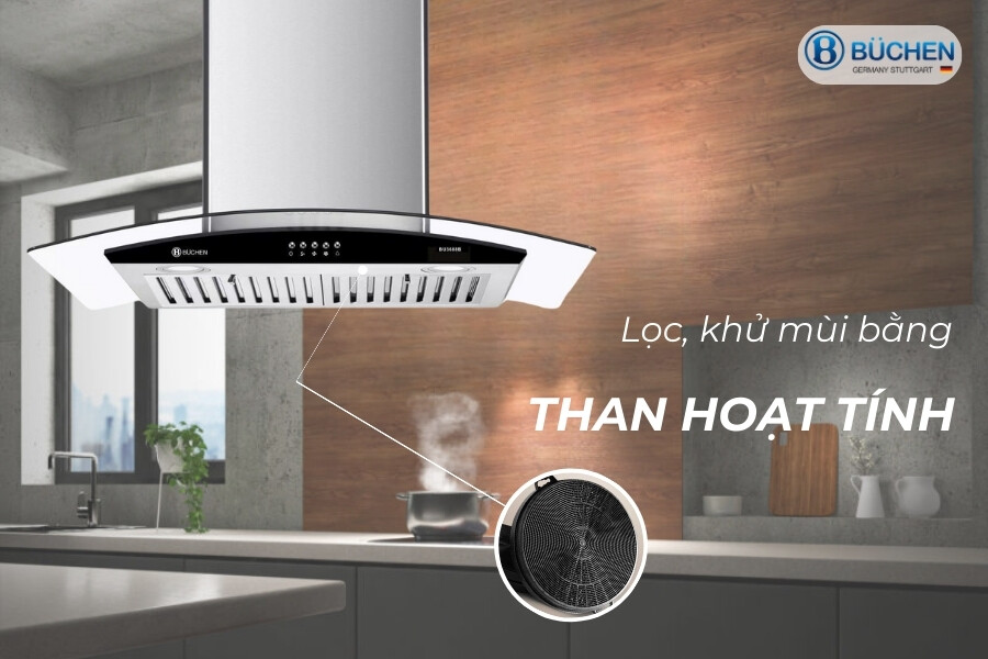 Khử mùi bằng than hoạt tính và ống thoát ra ngoài D150: Máy hút mùi Buchen BU3688B sử dụng phương pháp hút mùi trực tiếp tức mùi được đẩy ra ngoài theo đường ống thoát D150. Đồng thời chức năng khử mùi bằng than hoạt tính sẽ giúp cho không khí trong phòng bếp luôn sạch sẽ. Cách thức này sẽ giúp máy có hiệu quả tới 100% và mùi sẽ được đẩy hoàn toàn ra ngoài trời.