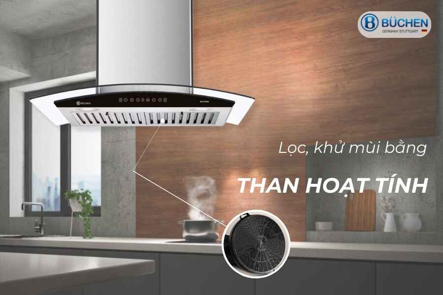 Khử mùi bằng than hoạt tính và ống thoát ra ngoài D150: Máy hút mùi Buchen BU3788B sử dụng phương pháp hút mùi trực tiếp tức mùi được đẩy ra ngoài theo đường ống thoát D150. Đồng thời chức năng khử mùi bằng than hoạt tính sẽ giúp cho không khí trong phòng bếp luôn sạch sẽ. Cách thức này sẽ giúp máy có hiệu quả tới 100% và mùi sẽ được đẩy hoàn toàn ra ngoài trời.