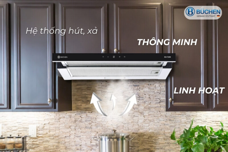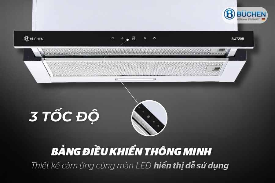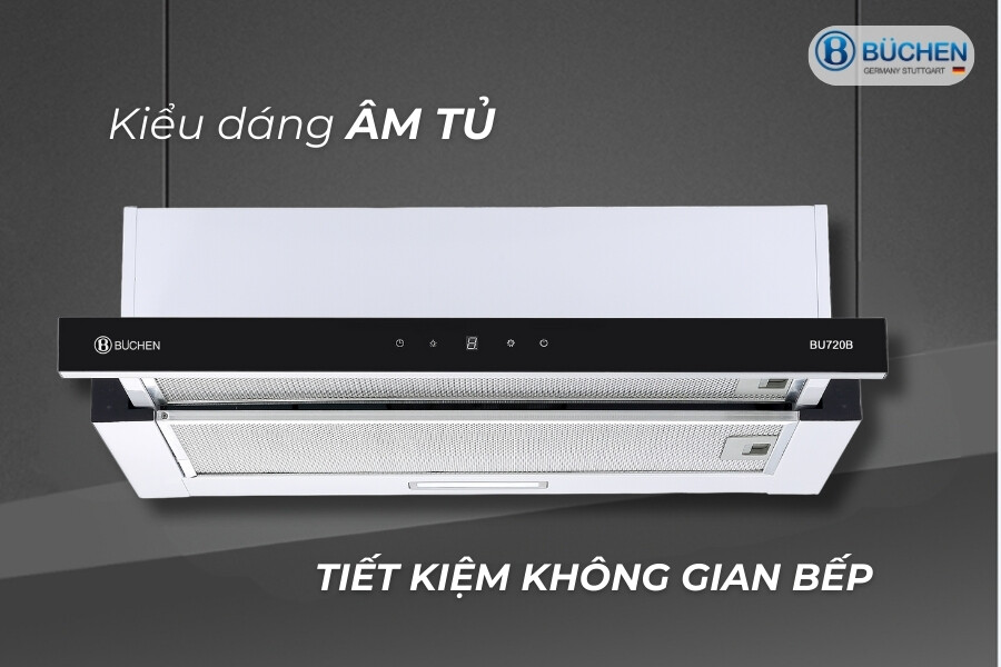 Máy hút mùi Buchen BU720B được thiết kế theo kiểu dáng âm tủ, là giải pháp tối ưu cho việc tiết kiệm không gian trong căn bếp. Với thân máy được phủ lớp sơn tĩnh điện chất lượng cao, nó không chỉ tạo nên vẻ đẹp hiện đại mà còn bền bỉ với thời gian.