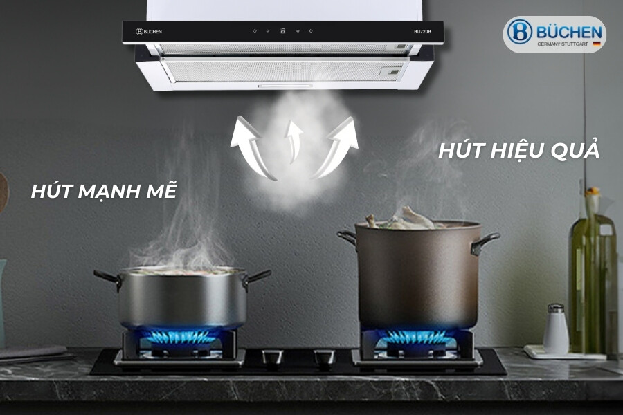 Công suất hút mạnh mẽ, hiệu quả: Với công suất hút mạnh mẽ lên đến 950m3/h, máy hút này đảm bảo loại bỏ mọi mùi khói, dầu mỡ và các chất gây ô nhiễm khác trong không gian bếp một cách hiệu quả. Khả năng hút mạnh của máy giúp bếp luôn được thông thoáng và không bị ám mùi khó chịu. Đặc biệt, việc loại bỏ mùi khói và hơi dầu mỡ không chỉ mang lại không khí trong lành mà còn bảo vệ nội thất bếp.