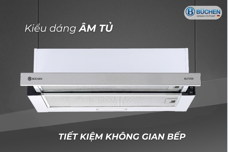 Máy hút mùi Buchen BU720S được thiết kế theo kiểu dáng âm tủ, là giải pháp tối ưu cho việc tiết kiệm không gian trong căn bếp. Với thân máy được phủ lớp sơn tĩnh điện chất lượng cao, nó không chỉ tạo nên vẻ đẹp hiện đại mà còn bền bỉ với thời gian.