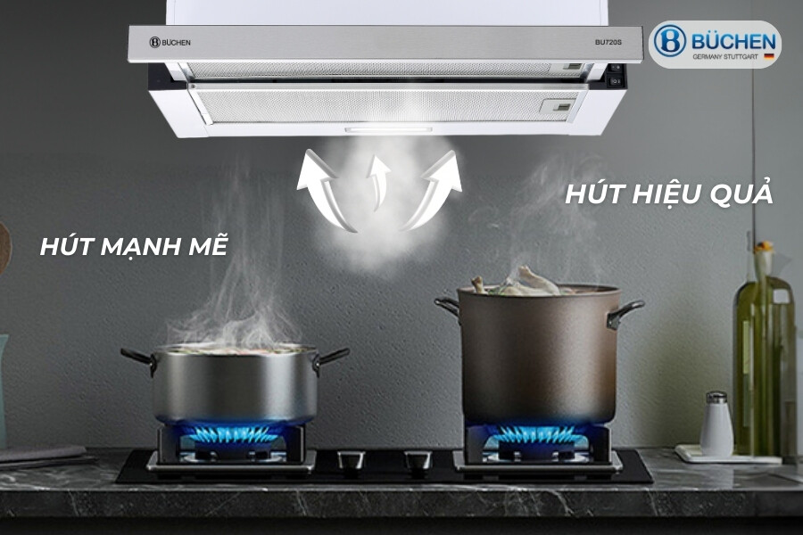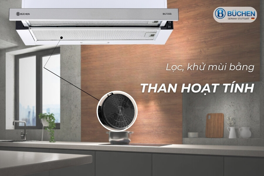 Máy hút mùi âm tủ Buchen còn trang bị hệ thống than hoạt tính, có tác dụng khử mùi, thanh lọc không khí, dầu mỡ hiệu quả tạo ra không khí trong lành và sạch sẽ lên đến 99% trong không gian bếp, máy hút khói âm tủ BU720S có công suất hút 700m3/h loại bỏ mùi phát ra từ quá trình nấu nướng, làm cho phòng bếp dễ chịu hơn và còn cải thiện an toàn môi trường bếp bằng cách loại bỏ những chất gây ô nhiễm khỏi không khí.