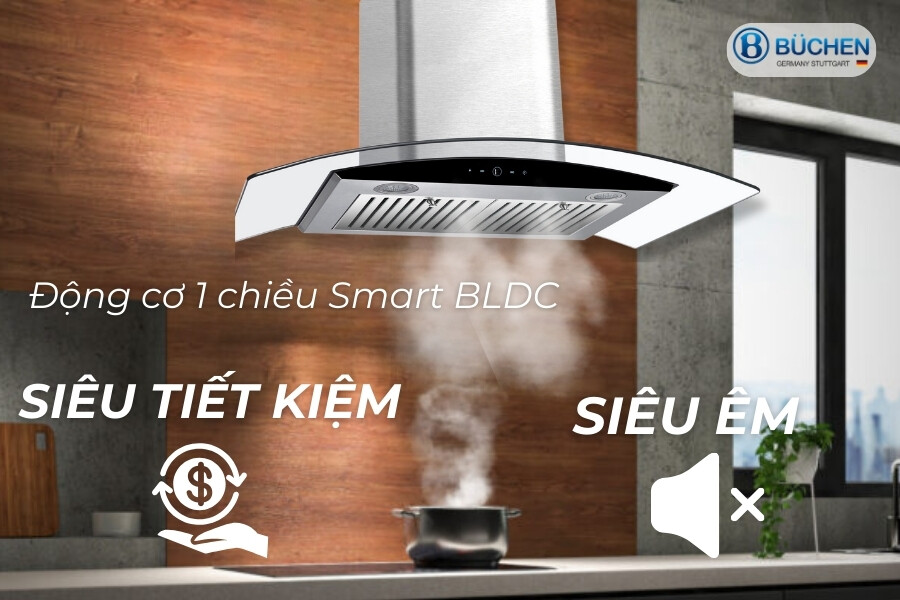 Công suất hút khỏe, động cơ Smart BLDC tiết kiệm điện năng: Máy hút mùi Buchen BU86DC được trang bị động cơ Smart BLDC nhằm tạo ra một công suất hút lớn nhất. Công suất hút cực mạnh 1200m3/h giúp hút hết các mùi thức ăn làm sạch không khí mang lại cho căn bếp luôn thông thoáng. Máy hút mùi hoạt động dựa trên nguyên tắc của quạt thông gió kết hợp với các màng lọc. Máy thường bao gồm các bộ phận cơ bản như: lớp toa inox bên ngoài, hệ thống dẫn khí, lưới lọc, quạt hút, đèn chiếu sáng, đèn báo hiệu mức độ bám bẩn và bảng điều khiển tốc độ hút. Các loại khí độc hại và mùi khó chịu sẽ được hút lên bằng turbin (hoặc động cơ moter) và chuyển ra ngoài, còn bụi bẩn và các hạt dầu mỡ sẽ bám lại lớp màng lọc, có thể dễ dàng tháo ra để vệ sinh và thay mới thiết bị.