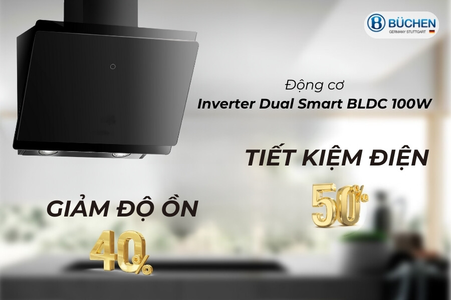 Công suất hút khỏe, động cơ Inverter Dual Smart BLDC: Máy hút mùi Buchen BU88DWB được trang bị động cơ Inverter Dual Smart BLDC nhằm tạo ra một công suất hút lớn nhất. Công suất hút cực mạnh 1200m3/h giúp hút hết các mùi thức ăn làm sạch không khí mang lại cho căn bếp luôn thông thoáng.