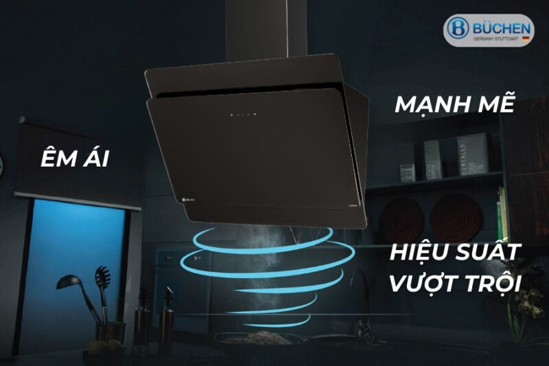 Công suất hút khỏe, động cơ turbin đôi: Máy hút mùi Buchen BU89DWB được trang bị động cơ tua bin đôi nhằm tạo ra một công suất hút lớn nhất. Công suất hút cực mạnh 1200m3/h giúp hút hết các mùi thức ăn làm sạch không khí mang lại cho căn bếp luôn thông thoáng. Máy hút mùi hoạt động dựa trên nguyên tắc của quạt thông gió kết hợp với các màng lọc. Máy thường bao gồm các bộ phận cơ bản như: lớp toa inox bên ngoài, hệ thống dẫn khí, lưới lọc, quạt hút, đèn chiếu sáng, đèn báo hiệu mức độ bám bẩn và bảng điều khiển tốc độ hút. Các loại khí độc hại và mùi khó chịu sẽ được hút lên bằng turbin (hoặc động cơ moter) và chuyển ra ngoài, còn bụi bẩn và các hạt dầu mỡ sẽ bám lại lớp màng lọc, có thể dễ dàng tháo ra để vệ sinh và thay mới thiết bị.