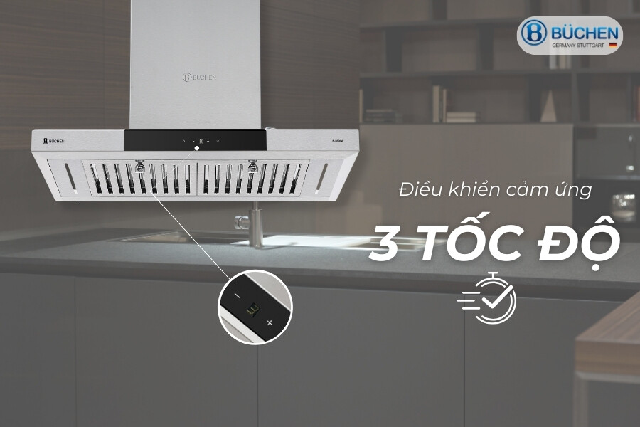 Máy hút mùi Buchen BU89DWK trang bị bảng điều khiển cảm ứng gồm 3 tốc độ hút phù hợp với lượng mùi và khói khi nấu ăn để đảm bảo sạch mùi cho không gian bếp nhà bạn. Hệ thống đèn chiếu sáng của máy gồm 2 đèn Led có tác dụng chiếu sáng và làm cho công việc nấu ăn thêm thuận lợi. Lưới lọc mỡ bằng inox dạng thanh nan kết hợp than hoạt tính để ngăn chặn triệt để mùi, bụi lọt vào bên trong máy gây hỏng động cơ. Tấm lưới này có thể tháo rời để vệ sinh một cách dễ dàng.
