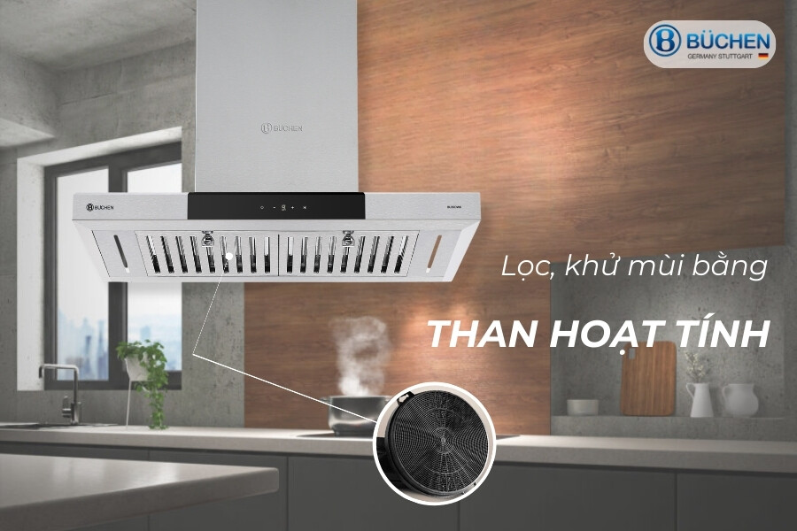 Khử mùi bằng than hoạt tính và ống thoát ra ngoài D150: Máy hút mùi Buchen BU89DWK sử dụng phương pháp hút mùi trực tiếp tức mùi được đẩy ra ngoài theo đường ống thoát D150. Đồng thời chức năng khử mùi bằng than hoạt tính sẽ giúp cho không khí trong phòng bếp luôn sạch sẽ. Cách thức này sẽ giúp máy có hiệu quả tới 100% và mùi sẽ được đẩy hoàn toàn ra ngoài trời.