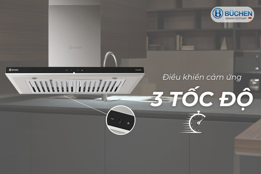Điều khiển cảm ứng 3 tốc độ linh hoạt: Máy hút mùi Buchen BU97DWS trang bị bảng điều khiển cảm ứng gồm 3 tốc độ hút phù hợp với lượng mùi và khói khi nấu ăn để đảm bảo sạch mùi cho không gian bếp nhà bạn. Hệ thống đèn chiếu sáng của máy gồm 2 đèn Led có tác dụng chiếu sáng và làm cho công việc nấu ăn thêm thuận lợi. Lưới lọc mỡ bằng inox dạng thanh nan kết hợp than hoạt tính để ngăn chặn triệt để mùi, bụi lọt vào bên trong máy gây hỏng động cơ. Tấm lưới này có thể tháo rời để vệ sinh một cách dễ dàng.