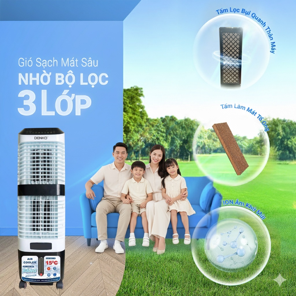 - An toàn cho sức khỏe và môi trường: Hiện nay trên thị trường các sản phẩm máy làm mát cao cấp thì đa số sử dụng nhựa tái chế rất độc hại, độ bền thấp. Riêng máy làm mát cao cấp Denko nói chung và Denko DK3000R nói riêng sử dụng nhựa tốt và an toàn cho sức khoẻ, tăng độ bền, bảo vệ an toàn sức khỏe cho gia đình bạn.